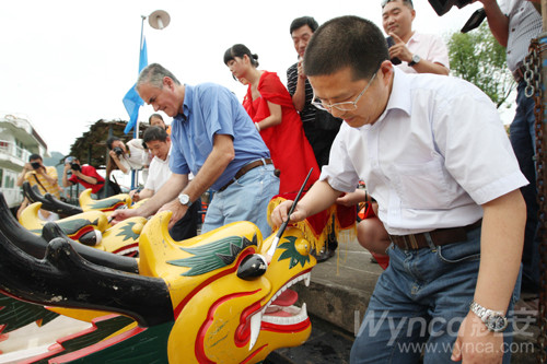 浏览量:3479 6月9日下午,新安集团两年一届的新安龙舟赛在新安江上激情上演。本届龙舟赛共有农化事业部、农药厂、化工二厂、有机硅事业部、有机硅厂、硅酮密封胶厂、热电厂、集团机关联队、采购中心、新安物流、新安包装、新安迈图、开化合成、开化元通、镇江江南、泰兴兴安等16支代表队参赛。经过激烈角逐,热电厂代表队获得了一等奖;开化元通和新安物流代表队获得了二等奖;有机硅厂、开化合成、集团机关三支代表队获得了三等奖。图为在龙舟赛前的开幕式上,集团领导为龙舟点睛。