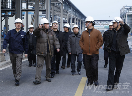 徐冠巨一行在王伟董事长、副总经理林加善、周家海,党委委员、办公室主任包雪传的陪同下实地现场查看了马目化工园区。在新安迈图,新安迈图总经理付立民向徐冠巨一行作了新安迈图发展的总体情况汇报,就新安迈图开工建设到单体试车成功的情况一一作了介绍。同时,他还向徐冠巨一行介绍了新安迈图安全文化的建设和执行情况,2011年新安迈图的发展战略,以及人才引进和人力资源建设情况。王伟董事长就新安迈图的二期项目建设问题作了情况说明。
